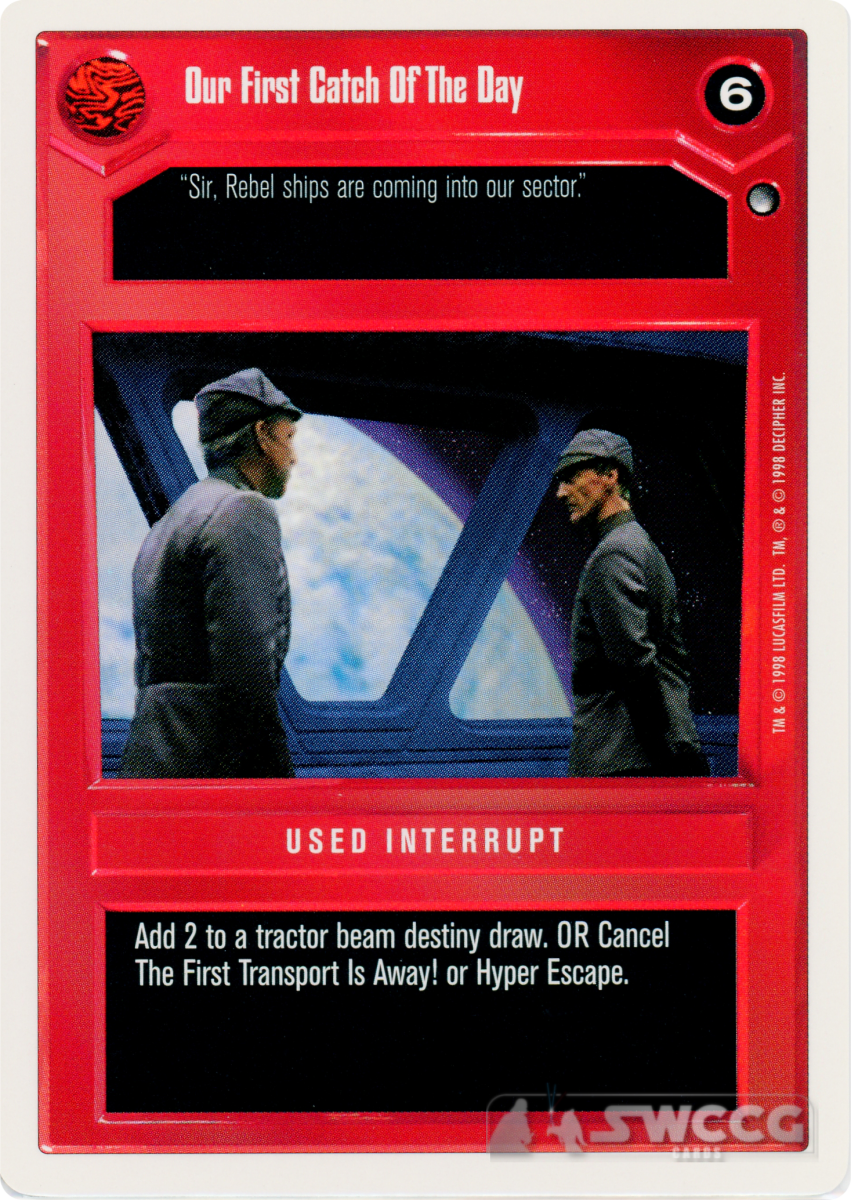 Add 2 to a tractor beam destiny draw. OR Cancel The First Transport Is Away! or Hyper Escape.