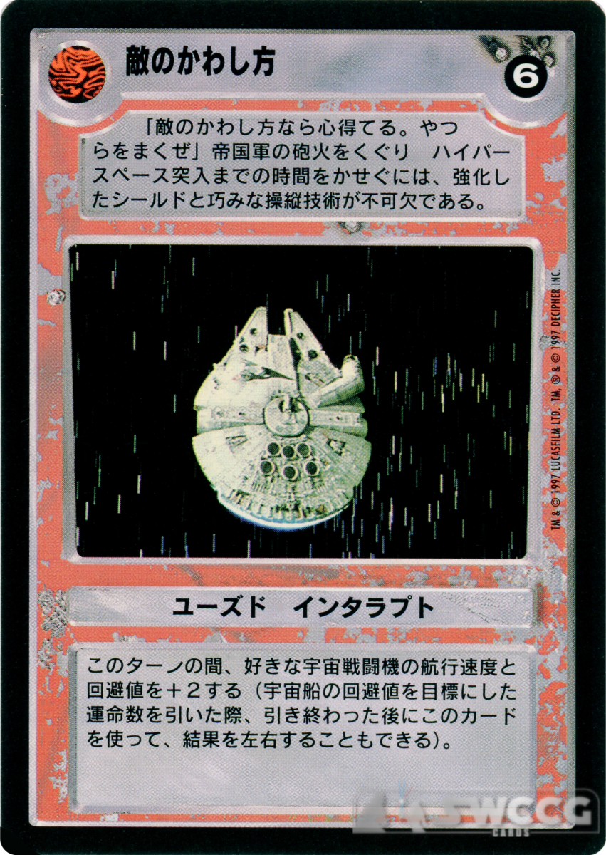 Add 2 to hyperspeed and maneuver of any starfighter for the remainder of this turn. (Interrupt may even affect the result immediately after a destiny draw targeting the starfighter’s maneuver.)