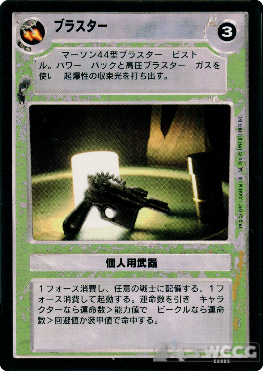 Use 1 Force to deploy on your warrior. May target a character, creature or vehicle using 1 Force. Draw destiny. Target hit if destiny > defense value.