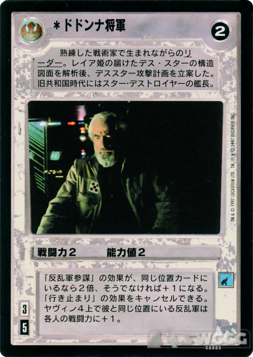 Increases Rebel Planners by 1, doubles if at same site. May use 1 Force to cancel Wrong Turn. Each Rebel present with him at a Yavin 4 site is power +1.