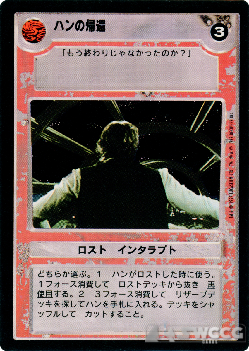 If Han is lost, use 1 Force to retrieve him from the Lost Pile. OR Use 3 Force to search through your Reserve Deck and take Han into your hand. Shuffle deck, cut and replace.