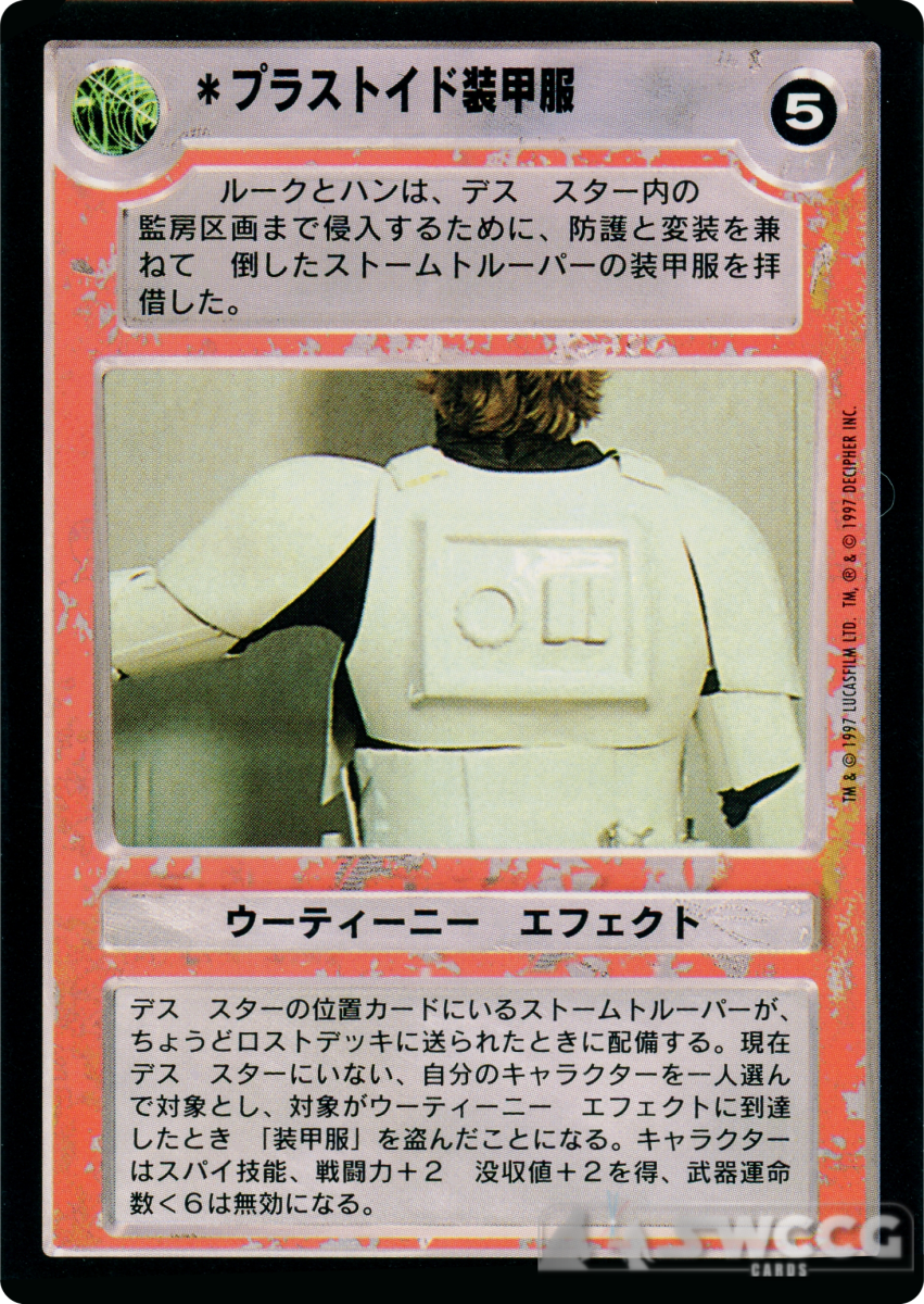 Deploy on a Death Star site where a stormtrooper was just lost. Target one of your characters not on Death Star. When target reaches Utinni Effect, relocate to target. Target is now ‘disguised:’ gains spy skill, power and forfeit +2, and armor = 5.