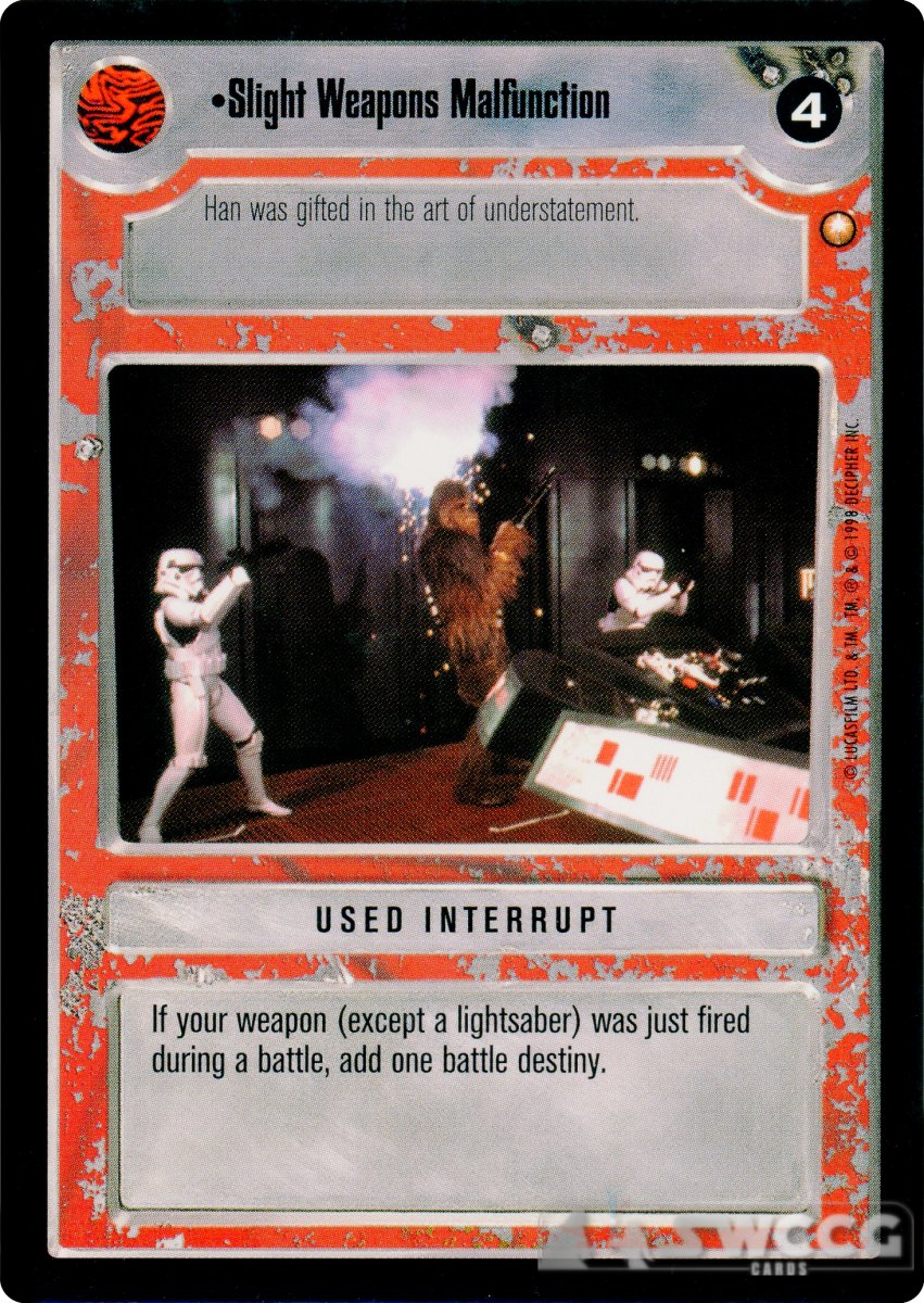 If your weapon (except a lightsaber) was just fired during a battle, add one battle destiny.