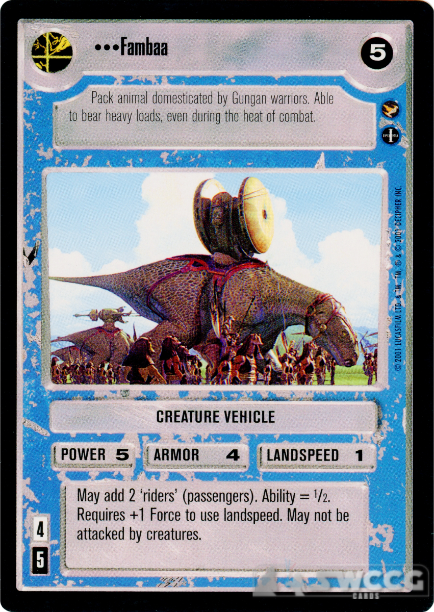 Pack animal domesticated by Gungan warriors. Able to bear heavy loads, even during the heat of combat.